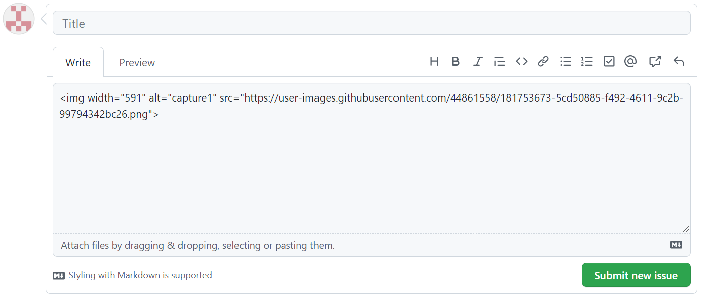 1. 깃헙의 프로젝트의 issues탭을 통해 이미지 파일을 넣을 수 있습니다.