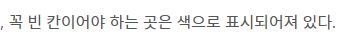1. 문제 조건을 하나 빼먹었는데, 빈칸이어야 하는 곳에 대한 확인이 없었습니다.
