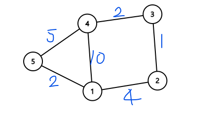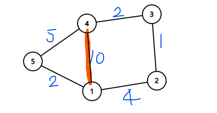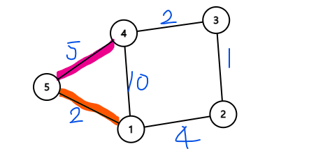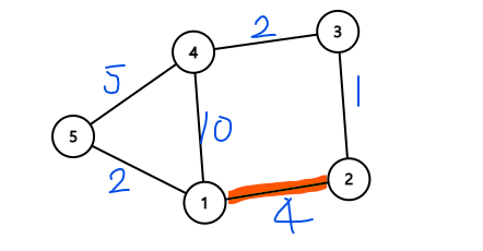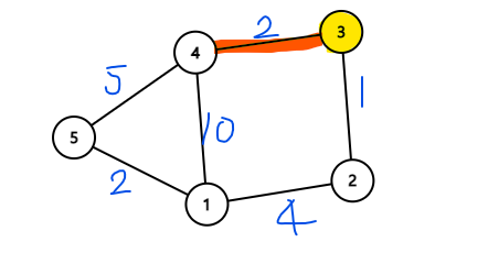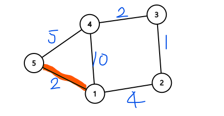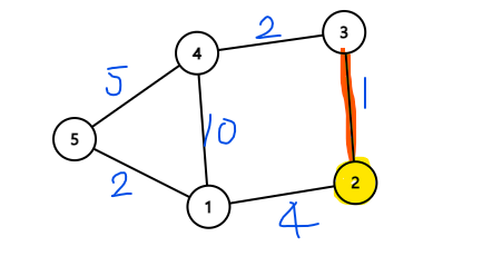 이제 1번 정점에서 가장 짧은 거리인 5번 정점을 살펴보겠습니다.