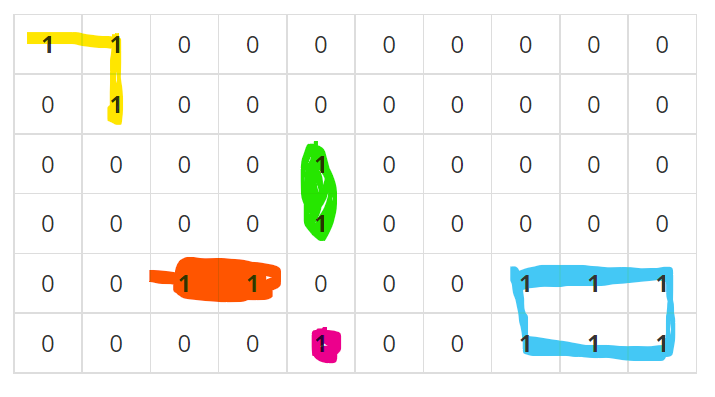 아래 그림과 같이 인접한 배추들을 그룹으로 묶어보면 총 5그룹이 나오는 것을 확인해볼 수 있었습니다.