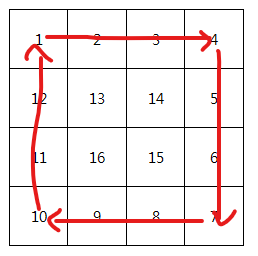 - 오른쪽 → 아래 → 왼쪽 → 위