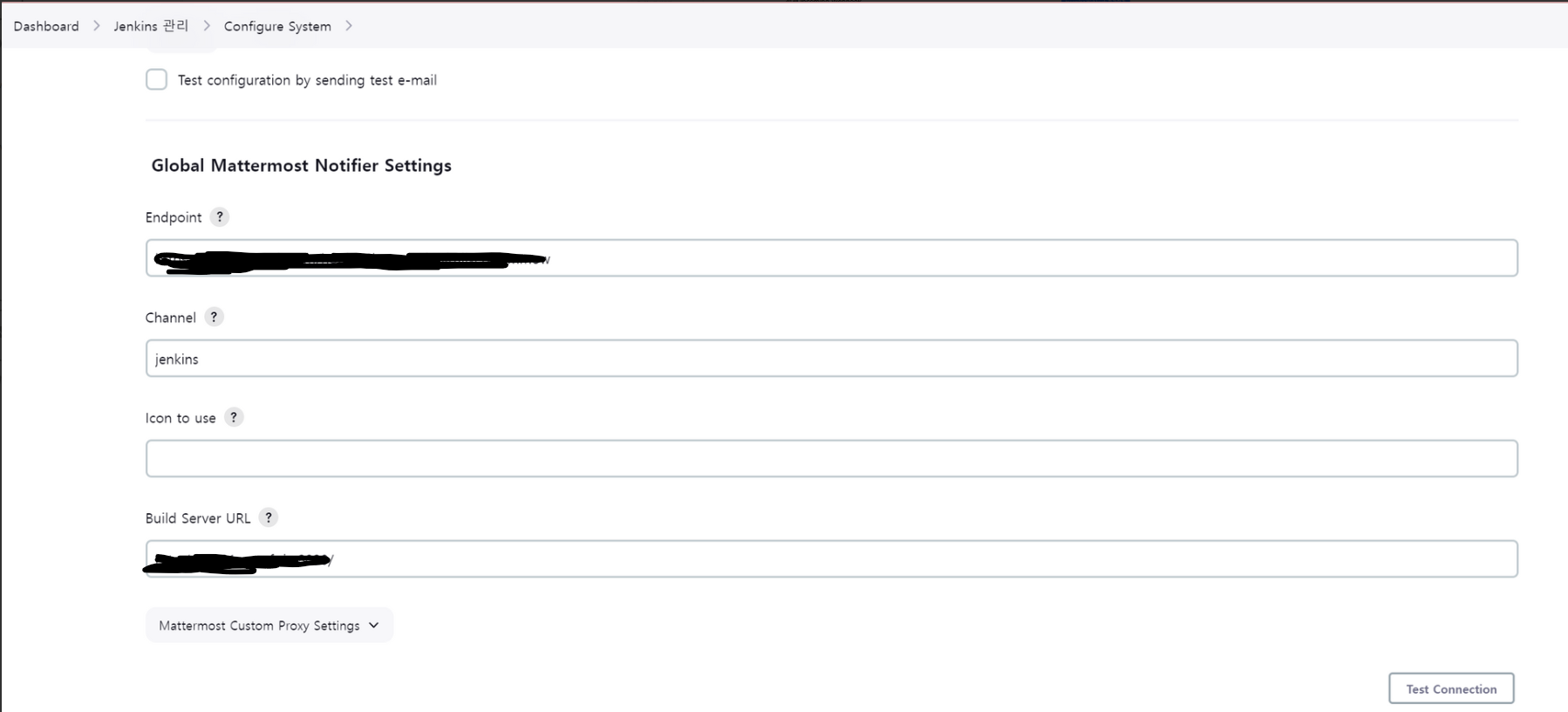 2번에서 만든 URL을 Endpoint에 넣어줍니다. 이때, Build Server URL은 Jenkins의 주소입니다.